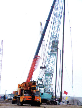 振沖器是振沖法施工中的特制機具。它產(chǎn)生水平向振動力振擠填料及周圍土體,而達到提高地基承載能力、減少沉降量、增加地基穩(wěn)定性、提高抗地震液化能力。 振沖法施工時除原地沖器外,尚需行走式起吊裝置,泵送輸水系統(tǒng),控制操作臺等。如工程單位缺乏起重機,本廠還供應(yīng)振沖器施工樁架,樁架有單邊滾管立柱式、液壓步履式、簡易履帶式等。